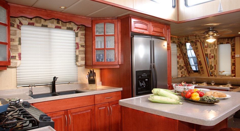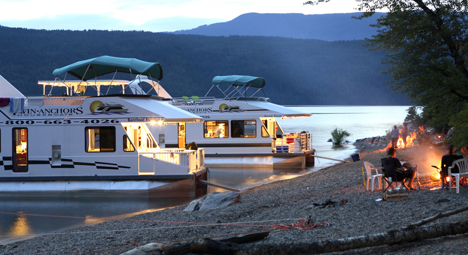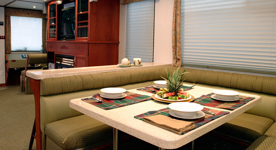 The CruiseCraft III features five staterooms, one bunk room, two double cuddies and 2 full baths, plus a full complement of appliances. This model appeals to large groups looking for a luxurious vacation on Shuswap Lake complete with all the comforts of home.